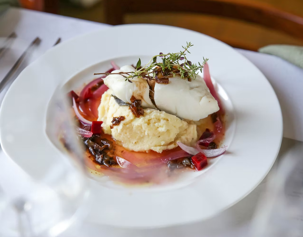 - Stekt ørret rullet ifersk timian med hvitvin-safransaus.